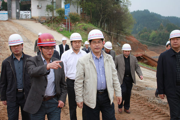 2012年4月6日,江西省水利廳副廳長廖瑞釗在宜春市副市長賴國根的陪同下,深入我公司承建的銅鼓縣大塅水庫除險加固工程項目視察指導(dǎo)工作。