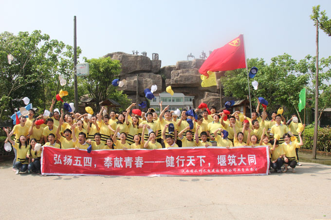 紅色的五月,火紅的青春。值此中國共產主義青年團成立90周年之際,江西省水利水電建設有限公司團委組織開展了一次主題為“弘揚五四,奉獻青春——健行天下,堰筑大同”慶祝五四青年節活動。活動地點在風景秀麗的南昌“湖光山舍”田園農莊,公司機關團支部、施工項目部團支部和機安公司、贛禹公司和源河公司團支部共79名團員和青年員工參加了活動。公司董事長兼總經理王元旦、黨委副書記王延軍、總經理助理王俊華等一同前往活動現場,共同慶祝五四青年節日的到來。
