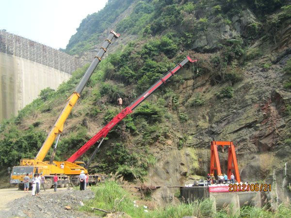 我司施工人員進(jìn)行導(dǎo)流隧洞封堵閘門(mén)下閘作業(yè)