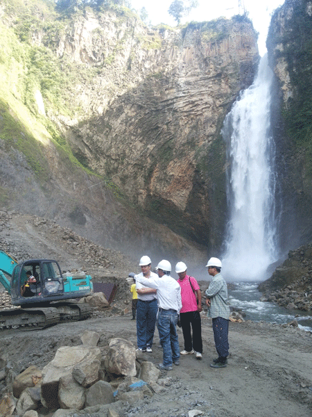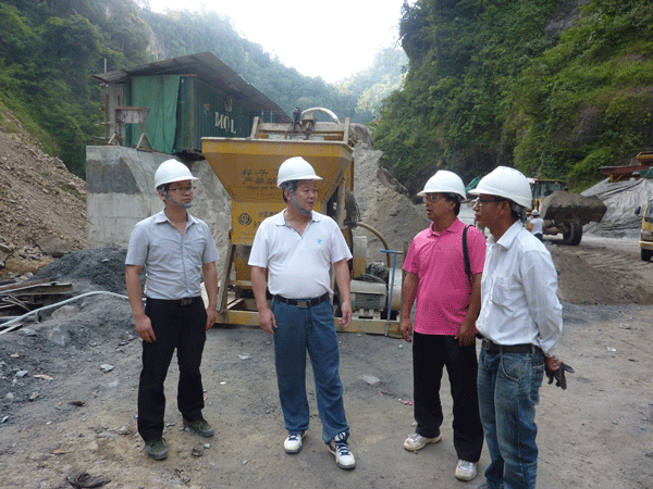 9月20日上午8時,王總一行抵達印尼棉蘭國際機場,隨即轉機前往PAKKAT水電站項目所在地。在項目經理孫小軍等的陪同下,王總不辭辛苦深入到大壩施工區,認真察看了大壩、發電隧洞等施工現場,他與現場施工人員一一握手并表示節日的慰問。王總察看施工現場并聽取匯報后,對大壩的建設情況以及工程外觀形象控制表示滿意,并結合自己的經驗對豎井的施工提出了建設性建議,重點強調了豎井施工安全生產的重要性。