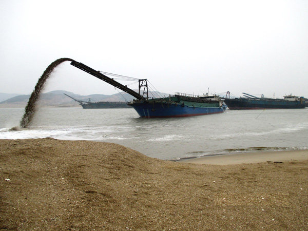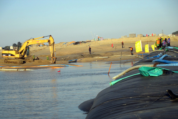 大型疏浚船吹填作業