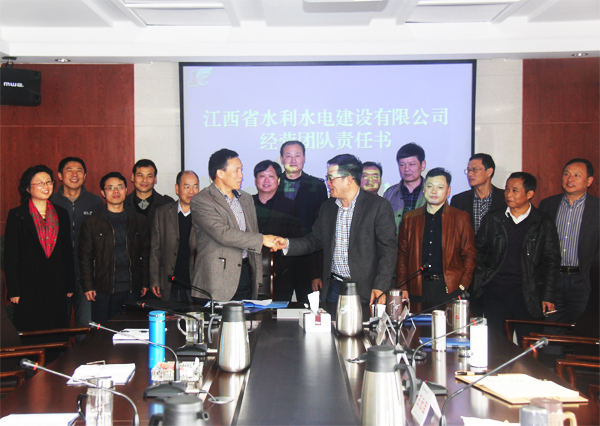 2015年4月11日,江西省水利水電建設(shè)有限公司2015年度國(guó)內(nèi)經(jīng)營(yíng)團(tuán)隊(duì)業(yè)績(jī)責(zé)任書(shū)簽字儀式在公司總部星河國(guó)際22樓會(huì)議室舉行。公司總經(jīng)理徐洪良分別與公司經(jīng)營(yíng)層高管、部門負(fù)責(zé)人簽訂了2015年度國(guó)內(nèi)經(jīng)營(yíng)團(tuán)隊(duì)業(yè)績(jī)責(zé)任書(shū)。