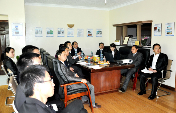 集團(tuán)資訊 當(dāng)?shù)貢r(shí)間2015年7月16日,中國駐肯尼亞經(jīng)濟(jì)商務(wù)處參贊郭策一行到我司肯尼亞分公司調(diào)研。肯尼亞分公司總經(jīng)理賀翔、副總經(jīng)理彭紅軍及相關(guān)人員迎接并陪同調(diào)研。