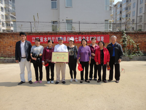 2015年10月28日,我公司門球代表隊參加了江西省水利廳廳直單位第七屆“老友杯”門球賽,本次比賽由江西省水利廳離退休干部處主辦、江西省水利水電建設有限公司承辦,廳直單位共4個代表隊參加。經過緊張激烈的角逐,我公司門球代表隊榮獲本次比賽團體組第一名。 公司門球代表隊是一支由離退休職工組成的隊伍。在賽場上,他們團結一致、密切協作、敢打敢拼,展現了江西水建人良好的精神風貌和不懈奮斗、頑強拼搏的風采。