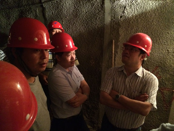 領(lǐng)導(dǎo)對隧洞進(jìn)行安全、質(zhì)量檢查
