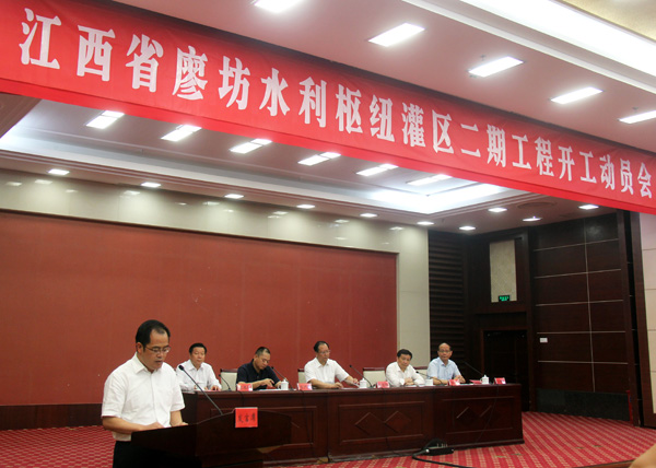 9月22日上午,廖坊水利樞紐灌區(qū)二期工程開工動員會召開。省委常委、常務副省長毛偉明出席并講話;市委書記肖毅主持,市委副書記、市長張鴻星致辭,水利部建管司副司長張嚴明、省發(fā)改委主任吳曉軍、省水利廳副廳長廖瑞釗參會并講話;公司總經理徐洪良代表項目參建單位在會上作表態(tài)發(fā)言;省直有關部門領導,撫州市四套領導班子成員,撫州市相關單位領導及項目參建各方代表參加了會議。