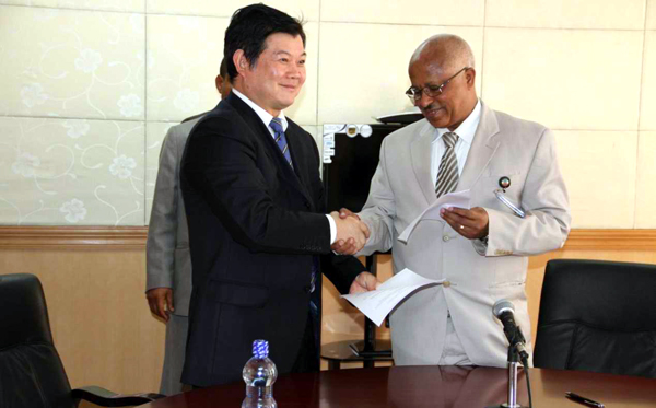 當天下午,董事長兼總經理王元旦率副總經理徐洪良、聶玉和及分公司王毓平經理前往拜訪埃塞原總理府水利顧問、現任埃塞糖業公司董事長兼總經理Sheferaw Draso(正部級)和分管副總Kiros Desta,雙方就我公司承建的國際承包工程KURAZ渠首項目進行了交流,會談在友好、熱烈的氣氛中進行,埃塞糖業公司董事長向我公司表達了對項目建設的要求和良好期望,王總表示,江西水建公司作為中國“走出去”的一支優秀海外承包商,在該項目全面開工前做好大量工作,目前各項工作正積極穩步推進當中,相信一定會保質保量完成任務。20上午,王總一行會見了埃塞俄比亞水利能源部部長Alemayehu Tegenu,雙方簽署合作備忘錄。