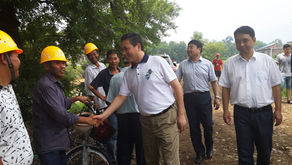 2014年8月8日上午,上饒市委書記陳俊卿一行來到我公司承建的玉山縣樟村鎮(zhèn)防洪工程檢查指導(dǎo)工作。來到施工現(xiàn)場,陳俊卿書記一行頂著炎炎烈日,深入查看并了解了防洪工程的投資規(guī)模和施工生產(chǎn)建設(shè)情況,隨后,項(xiàng)目部經(jīng)理?xiàng)钚≠F對(duì)項(xiàng)目完工后將產(chǎn)生的防洪生態(tài)效益作了簡單介紹,陳俊卿書記聽后非常高興,他指出,項(xiàng)目部和承建單位要齊心協(xié)力,加強(qiáng)安全生產(chǎn)管理,確保工程順利完工,早日造福當(dāng)?shù)匕傩铡W詈螅惪∏鋾涍€詢問了施工人員的生活情況,叮囑項(xiàng)目部既要保證工程施工進(jìn)度,也要注意防暑工作,讓員工家屬放心。
