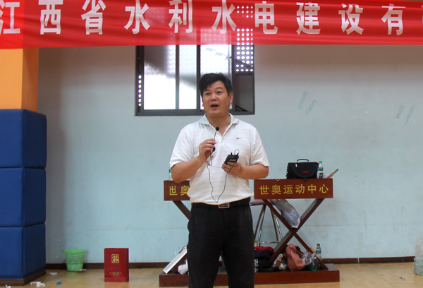 公司黨委書記、董事長總經理王元旦首先作開幕致詞。他在講話中說,為豐富公司員工的文化體育生活,公司在此舉辦員工籃球賽,這次比賽旨在增進公司各單位之間的團結和友誼,為江西水總培育集團型企業凝聚力量、注入新的活力,具有重要的紀念意義。希望參加比賽的各支球隊和隊員頑強拼搏,賽出成績,勇爭第一,同時要堅持友誼第一,比賽第二的原則。作為開展建黨90周年慶祝活動之一,通過本次比賽,共同祝愿偉大的中國共產黨和國家各項建設事業更加繁榮昌盛。黨委副書記王延軍宣布公司籃球賽開始。