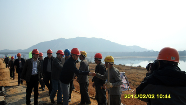 2月2日,正值農歷大年初三,江西省水利廳黨委書記、廳長孫曉山來到公司承建的峽江水利樞紐樟山防護工程施工現場,親切看望并慰問春節期間仍堅守崗位的一線施工人員。