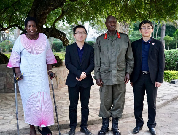 烏干達總統(tǒng)、烏干達駐肯大使與賀翔、李江夏合影