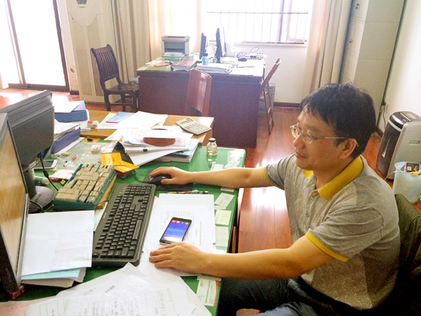 走進財務部的辦公室,周家煌的辦公桌上的擺設一目了然:桌面整潔干凈,桌上的文件排放的整齊有序。左上角壘起來的倆堆書籍,其一是《財務會計》、《中國稅務》等財務專業的雜志;另一堆書籍置于頂部的是《計算機財務管理:財務建模方法與技術》,往下的是諸如《計算機辦公軟件應用》、《信息時代的財務創新》等。